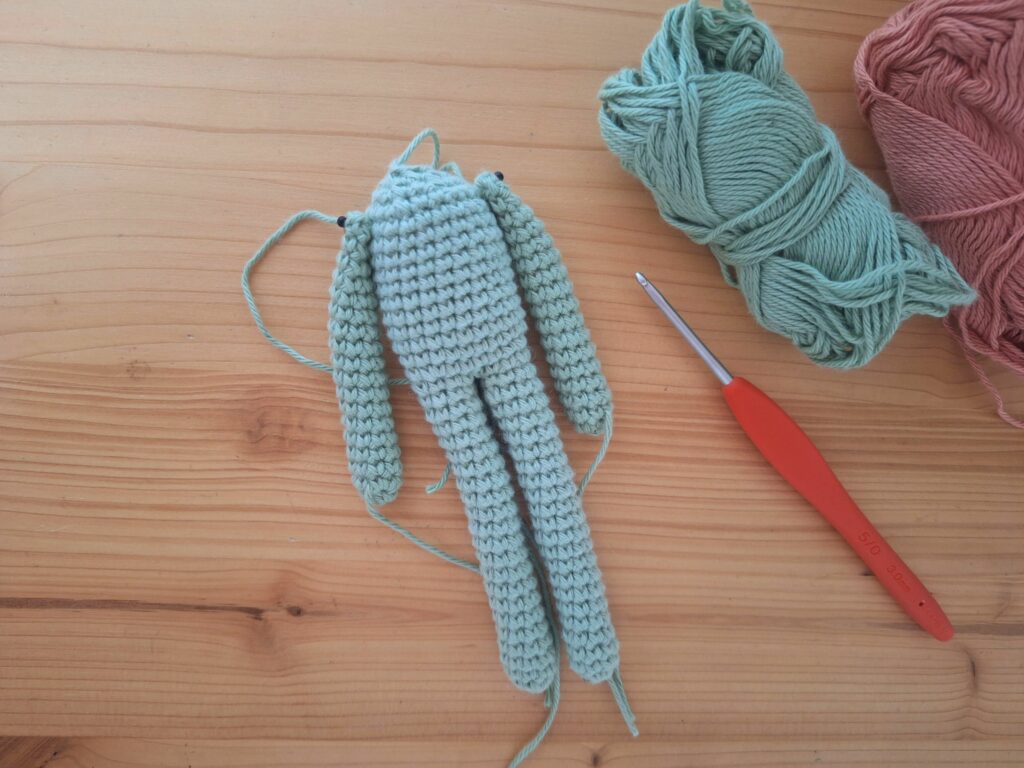 - Rangs 3 Ă 22 : 9 ms. Rembourrer progressivement les jambes.